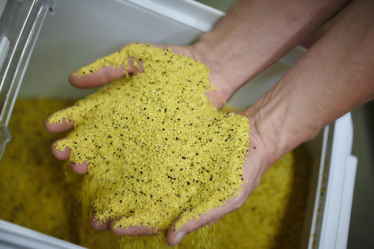 The taste of rapeseed oil was admittedly not that great. The farmer started looking for ways to improve the taste and discovered that the pellet provided the specific taste of rapeseed oil. He therefore devised a machine to hull the rapeseed. That husked rapeseed was then cold-pressed.