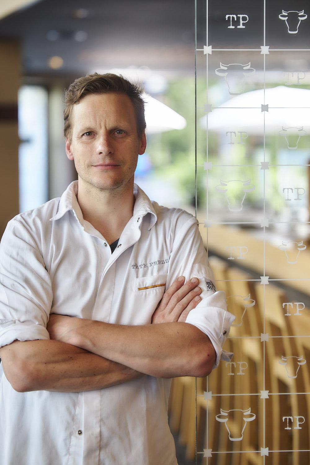Pieter Lonneville van Atelier Tête Pressée een van de chefs van lokale bodem die in alles wat hij doet bewustzijn toont voor de kenmerken van ‘zijn’ eigen grond. Hij werkt met producten van lokale leveranciers: onbewerkt, artisanaal, dagvers en van de beste kwaliteit. Hij noemt zijn gastronomie herkenbaar, lekker authentiek, een beetje bruut maar eerlijk tot op het bot.