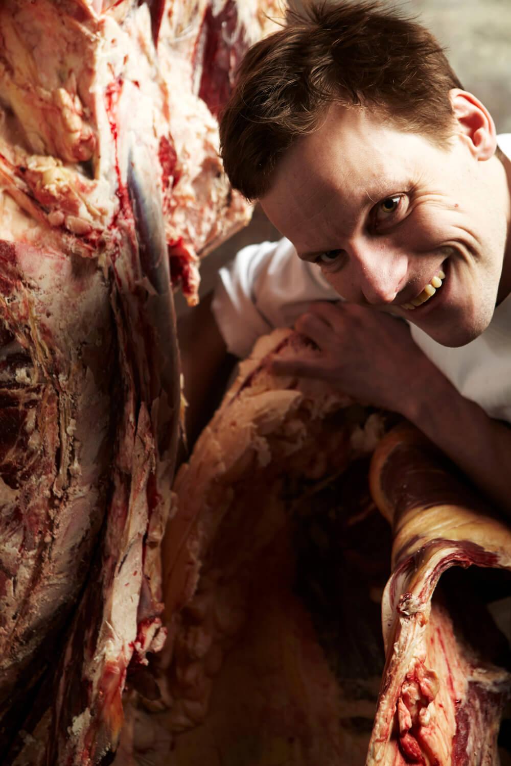 Als spekslager leer je ook veel bij over de anatomie van de dieren. Je leert waarom een bepaald stuk vlees malser is dan andere. Hoe je vlees droogt. Welke stukken fragiel zijn en hoe je de vezelstructuur intact houdt. Door te spreken met de boer, door te vertrouwen op zijn expertise en ook zijn eigen kennis aan te spreken, behoudt elk stuk vlees dat uit de keuken van Pieter komt z’n eigenheid.