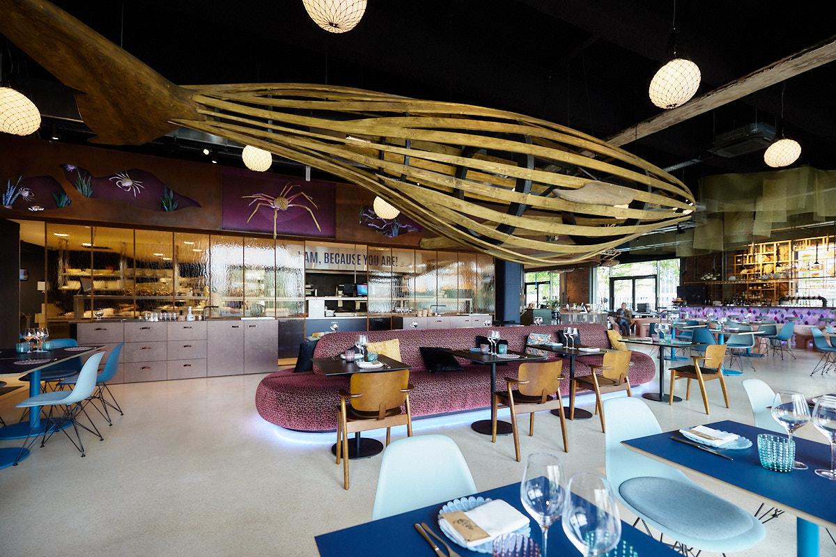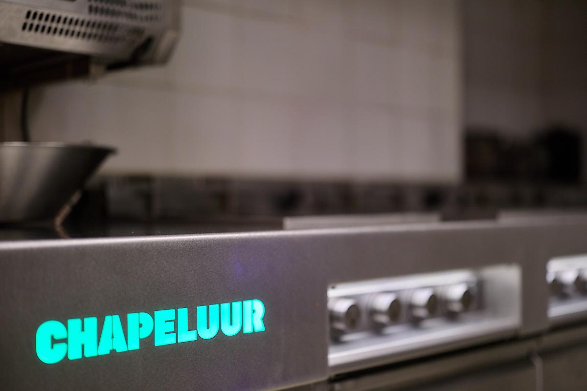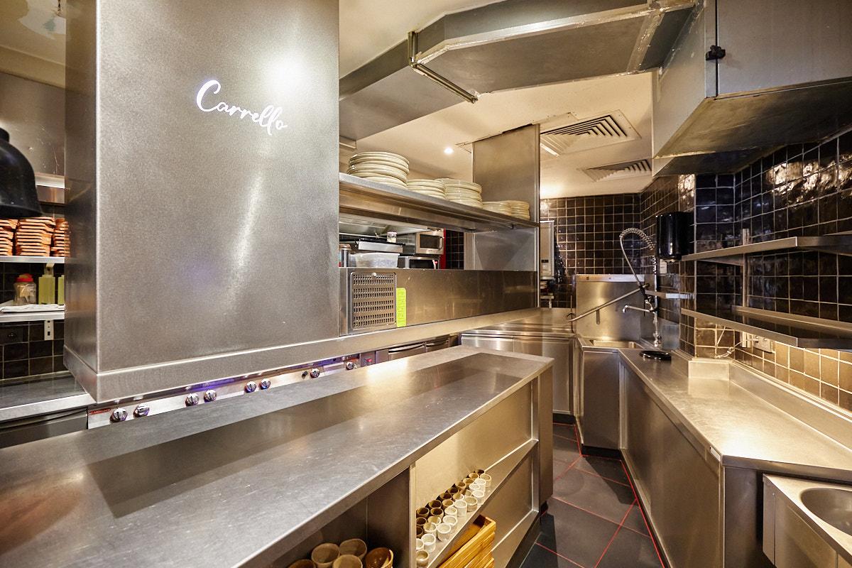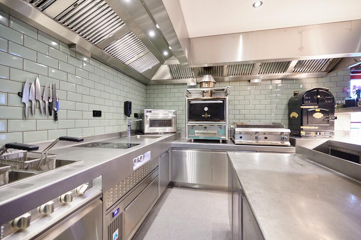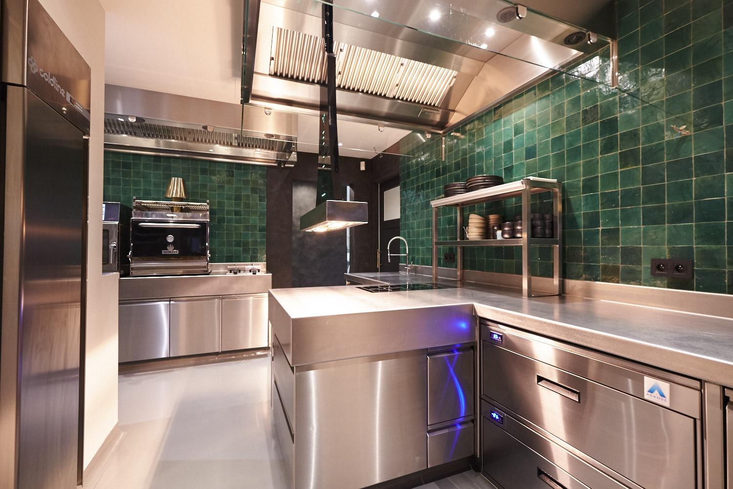 Open keuken voor Meat 44 met warmtestraler als eyecatcher