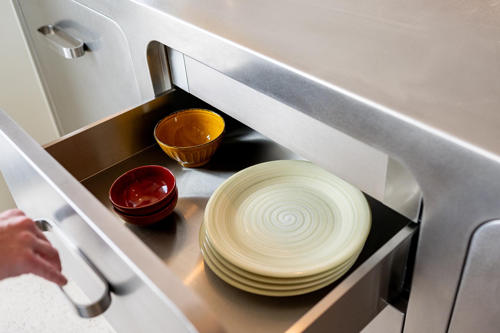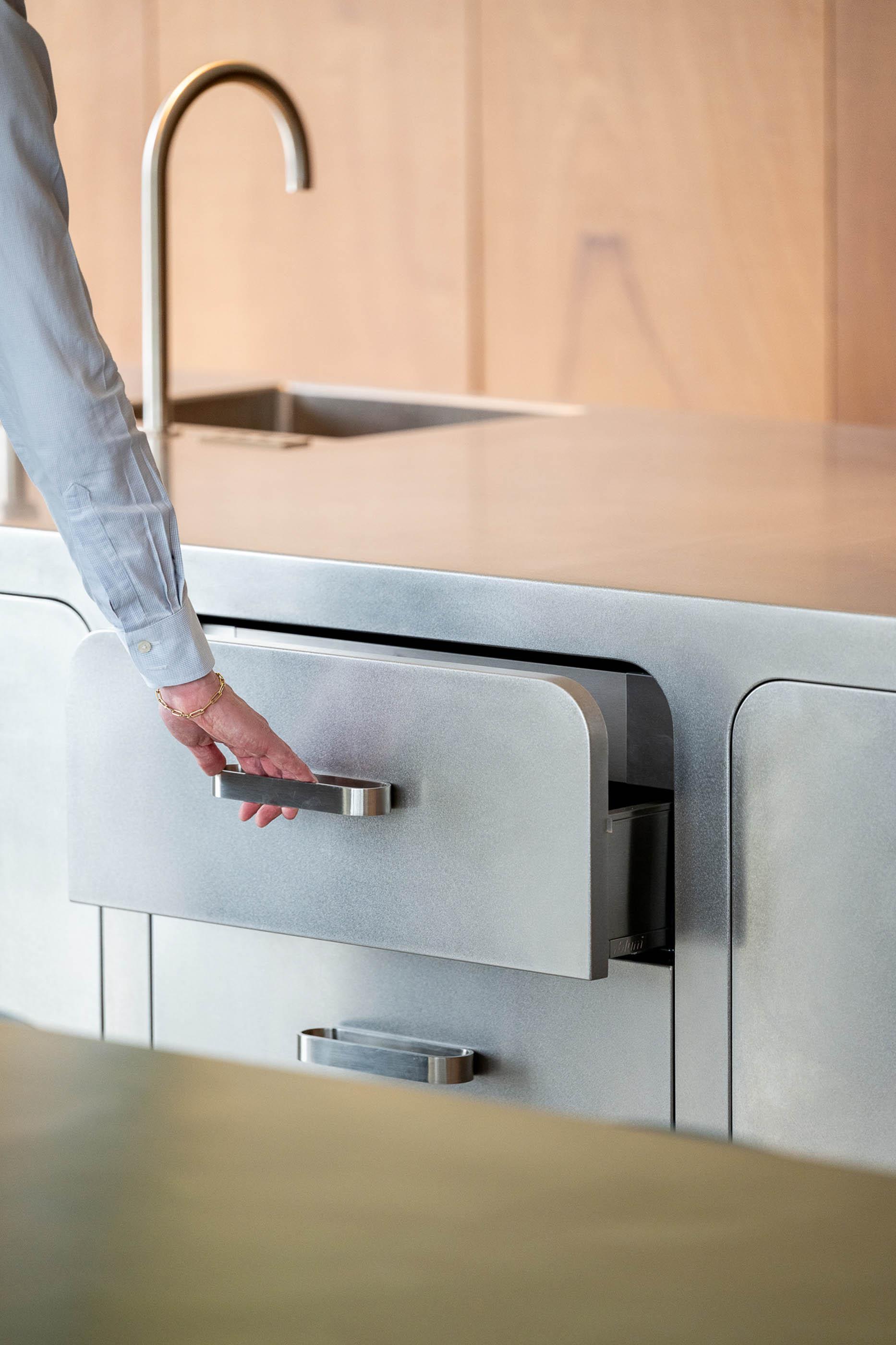 Bij "Manufacture" draait alles om het verbeteren van uw kookervaring zonder concessies te doen aan stijl. Het ingebouwde Aqualex-watersysteem levert gefilterd en gekoeld water rechtstreeks uit de kraan, en de Novy Panorama inductie kookplaat met ingebouwde downdraft dampkap zorgt voor een zuivere en open keukenruimte zonder hinderlijke afzuigkappen. Beide systemen zijn naadloos geïntegreerd in het design, zodat functionaliteit en esthetiek hand in hand gaan.