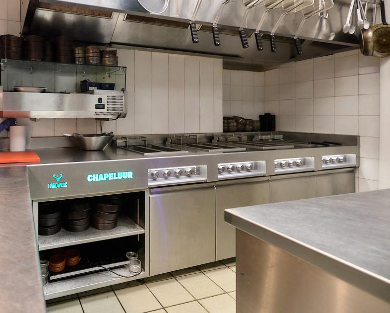 Nieuwe Håndwerk rvs maatwerk keuken voor de 2de vestiging van Chapeluur in Kortrijk.