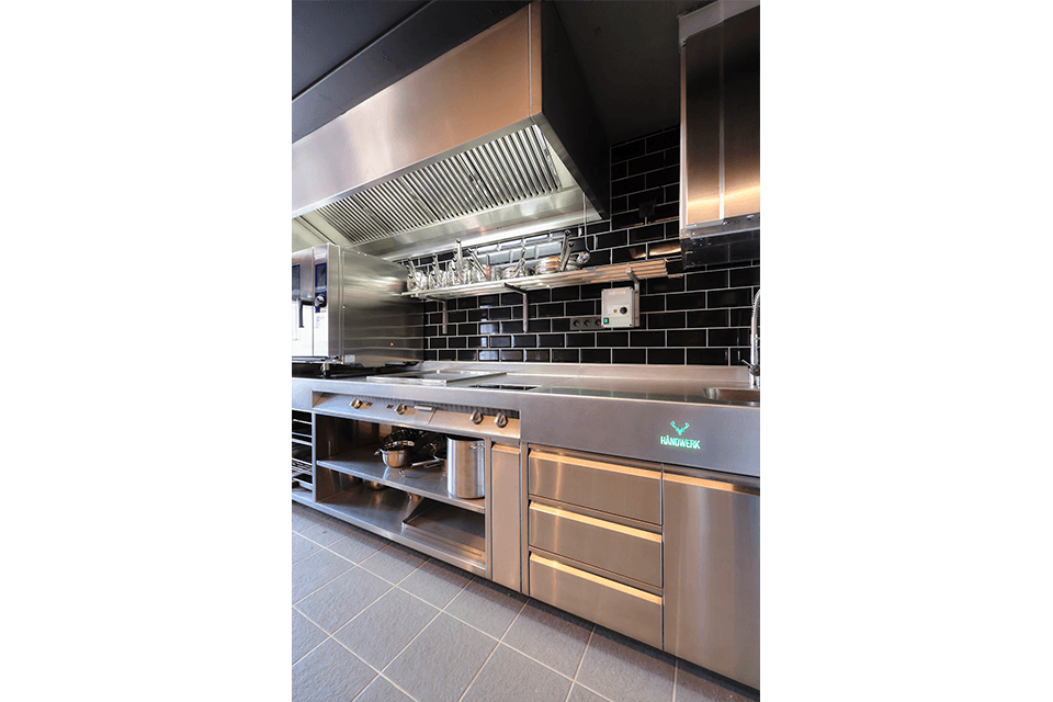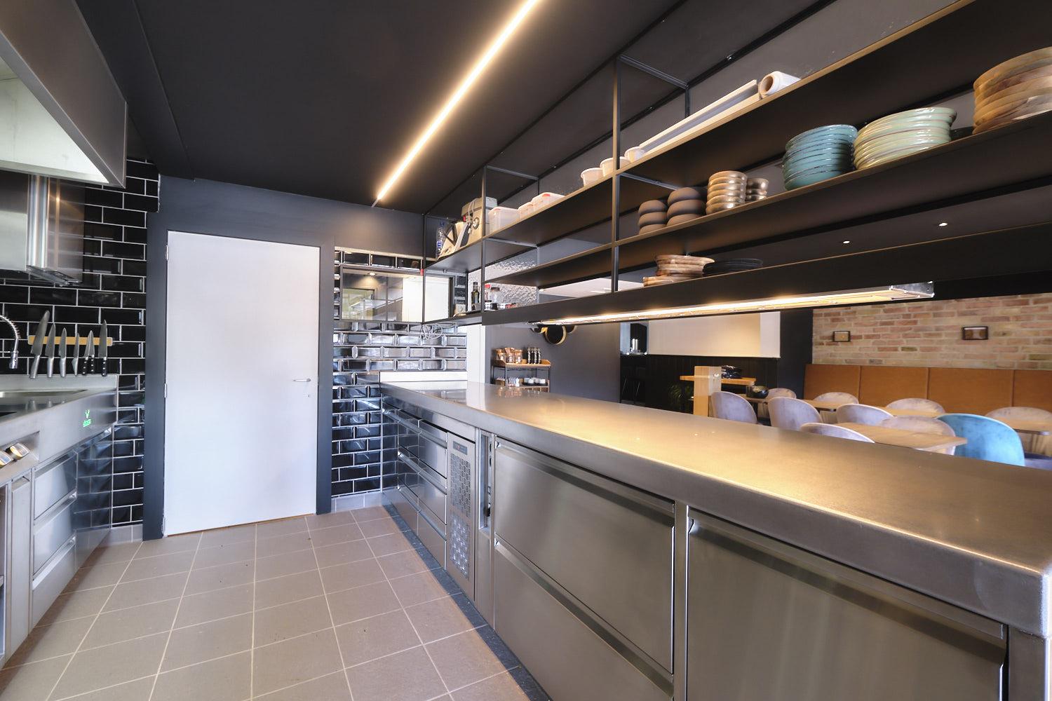 In het eerste verkennende gesprek stemden we de noden en de wensen budgettair af en vertaalden we deze vlot in een eerste ontwerp. Het resultaat is een ruime, open maatkeuken geworden die stijlvol overvloeit in het restaurant.